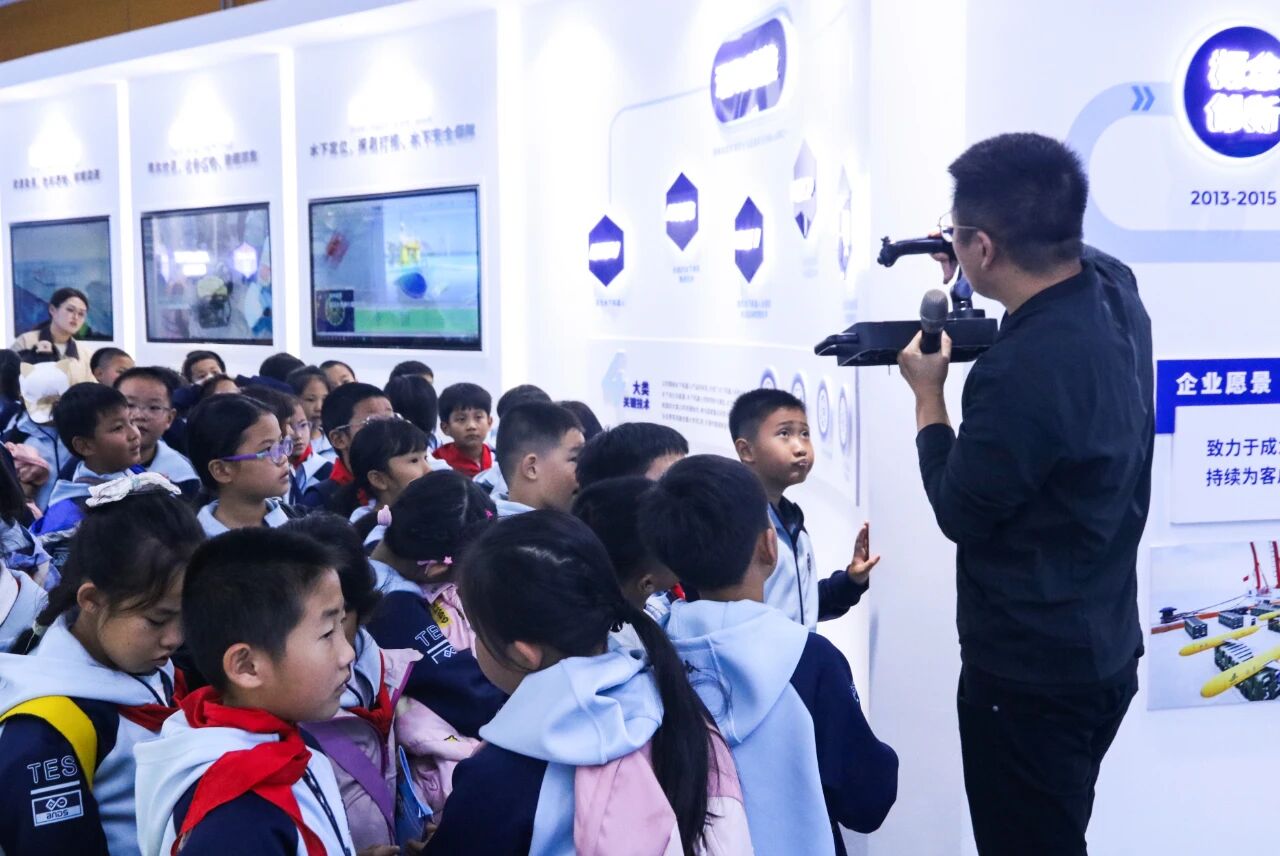 10月10日,北京十一学校天津实验学校的100余名三年级学生走进位于天津滨海新区的深之蓝总部,开展了一场别开生面的研学实践活动。活动通过沉浸式体验与互动实践,为学生们揭开了水下机器人技术的神秘面纱,点燃了他们对深海科技的热爱与向往。