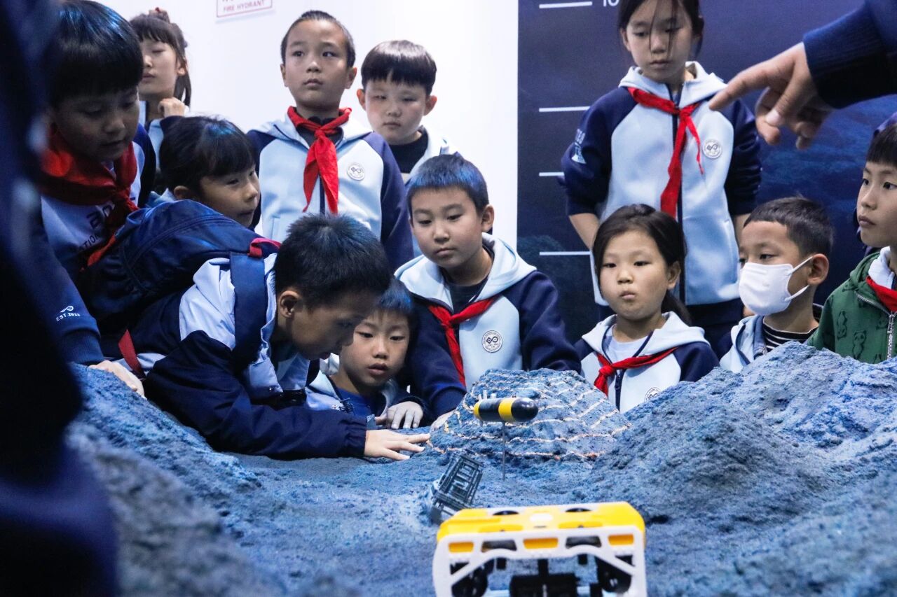 此外,现场还邀请随行教师亲身体验了水下助推器的强劲推力。水缸中扬起的浪花,让同学们兴奋不已,大家很快将水缸团团围住。同学们不仅感受到了水下智能科技的魅力,更激发起未来探索水下世界的热忱。